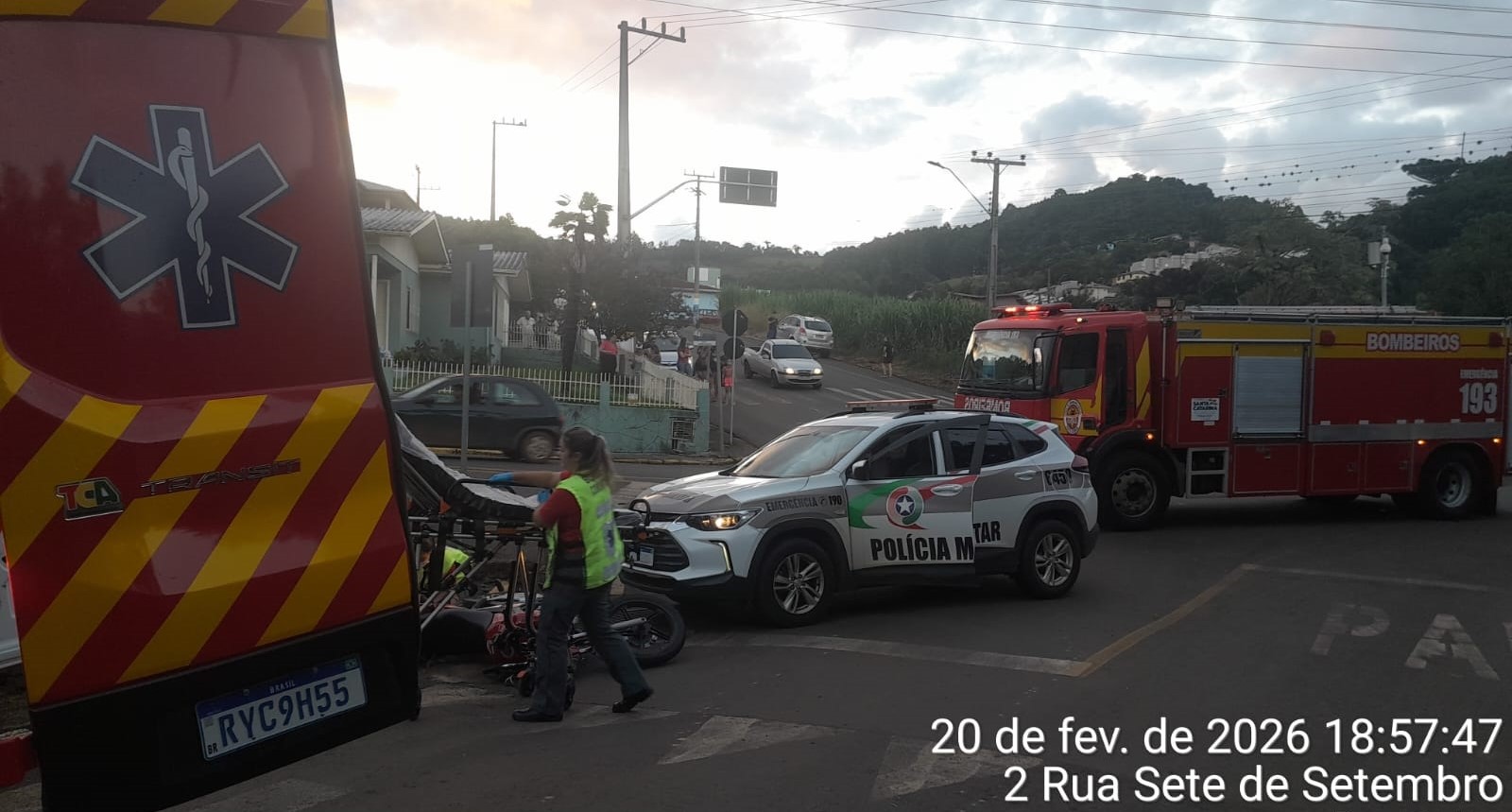 Queda de motocicleta mobiliza socorro e Polícia Militar em Salto Veloso