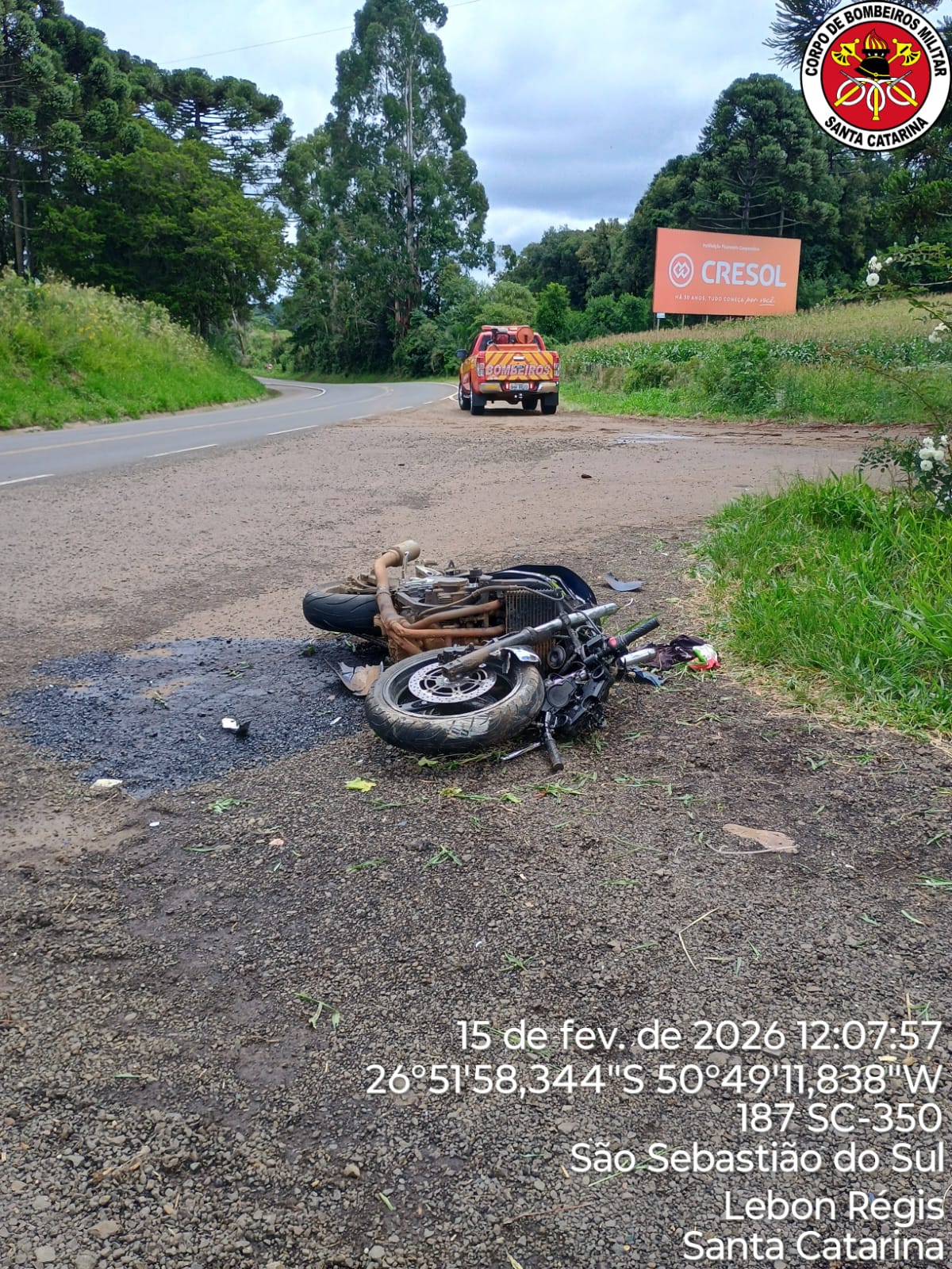 Bombeiros de Curitibanos atendem acidente de trânsito com vítima fatal no interior do município
