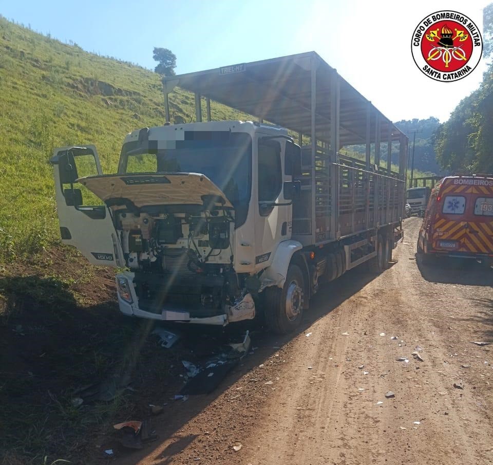 Mulher tem fratura exposta na perna após colisão com caminhão