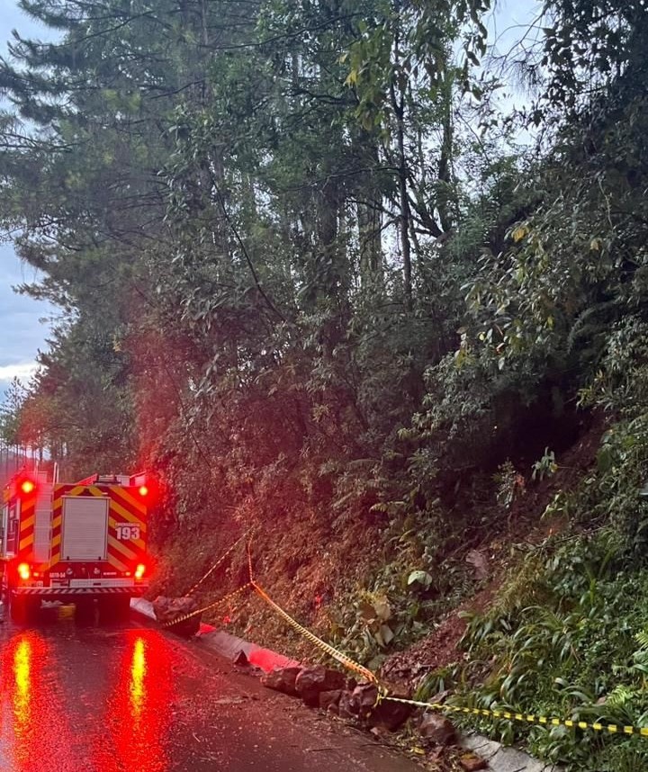 Rio das Antas: Deslizamento de terra e pedras interrompe parcialmente a pista da SC-135