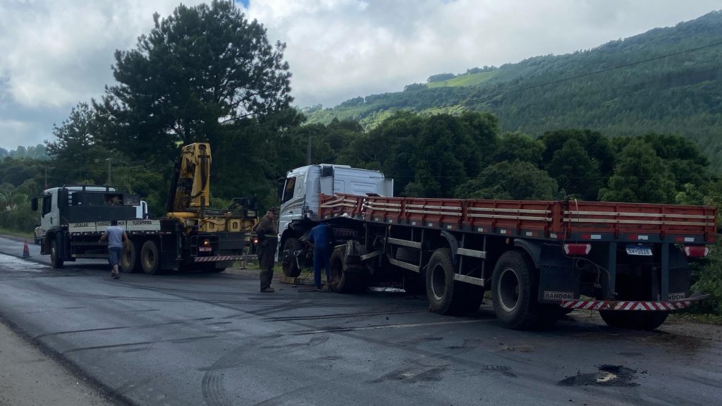 Trânsito fica interditado por 40 minutos na SC-350 durante remoção de caminhão