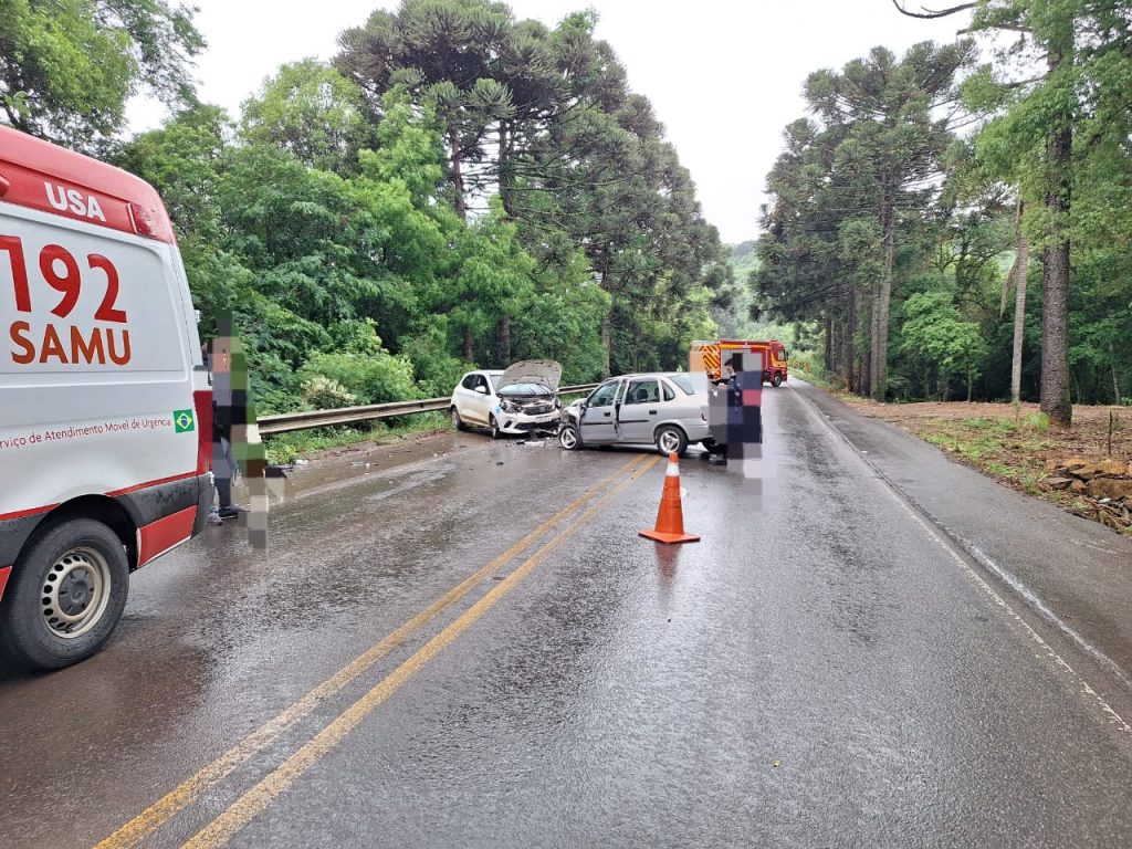 Colisão frontal deixa dois motoristas gravemente feridos na SC-355 em Videira
