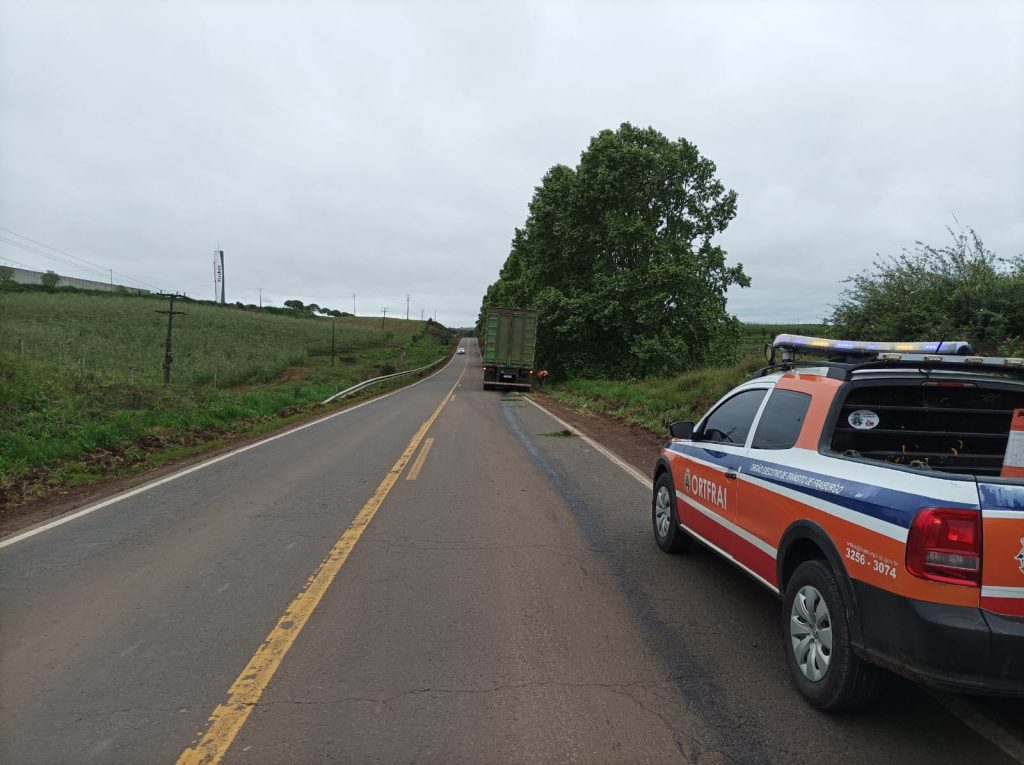 Carreta quebrada ocupa meia pista na SC-355, próximo ao bairro Liberata