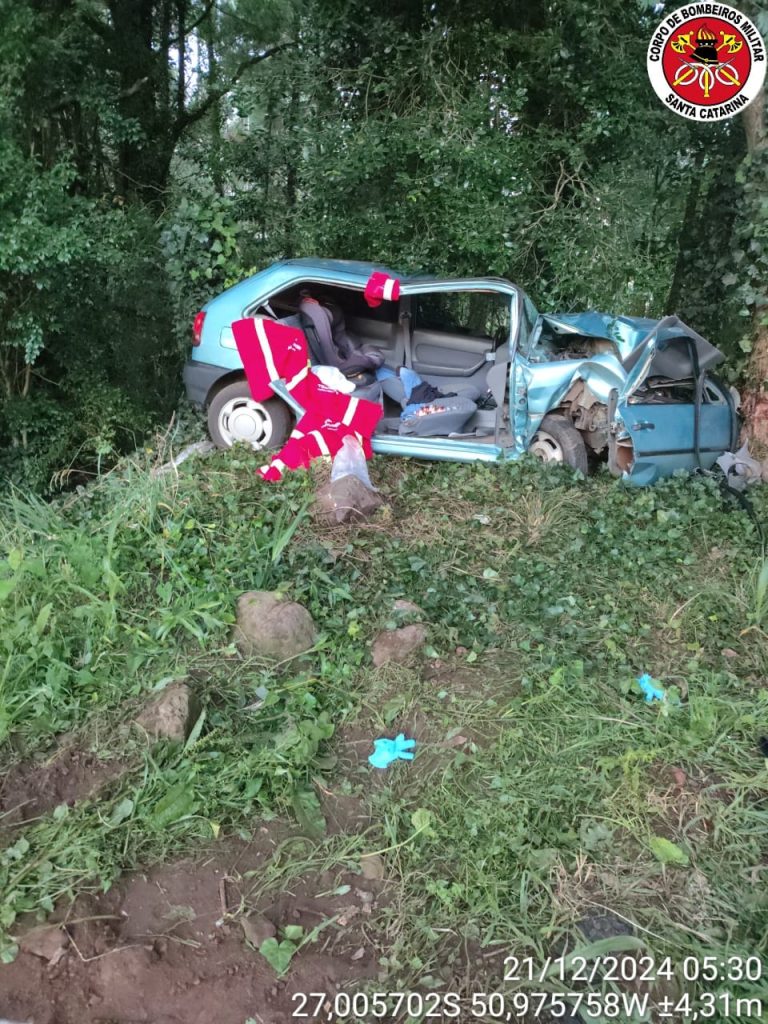 Grave acidente na SC-355 mobiliza Corpo de Bombeiros de Fraiburgo