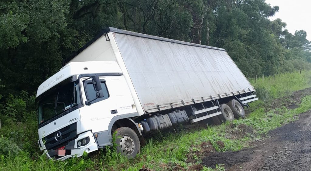 Tombamento de caminhão é registrado na SC-452, em Monte Carlo