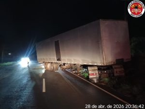De acordo com as informações repassadas pelo OBM de Lebon Régis, tratava-se de uma saída de pista envolvendo um caminhão Mercedes-Benz Axor, de cor branca. O veículo era conduzido por um homem de 33 anos, que foi encontrado deambulando no local, consciente e orientado.