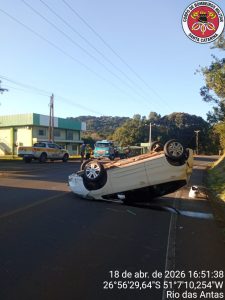 Na tarde deste sábado, 18 de abril de 2026, por volta das 16h29min, o Corpo de Bombeiros foi acionado para atender um acidente de trânsito na rodovia SC-135, sentido Videira, nas proximidades da empresa Siniplast, em Rio das Antas.