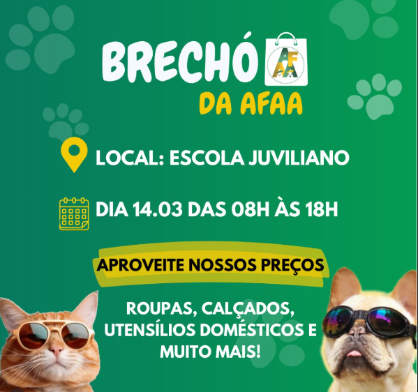 AFAA promove brechó solidário neste sábado para arrecadar recursos em prol dos animais