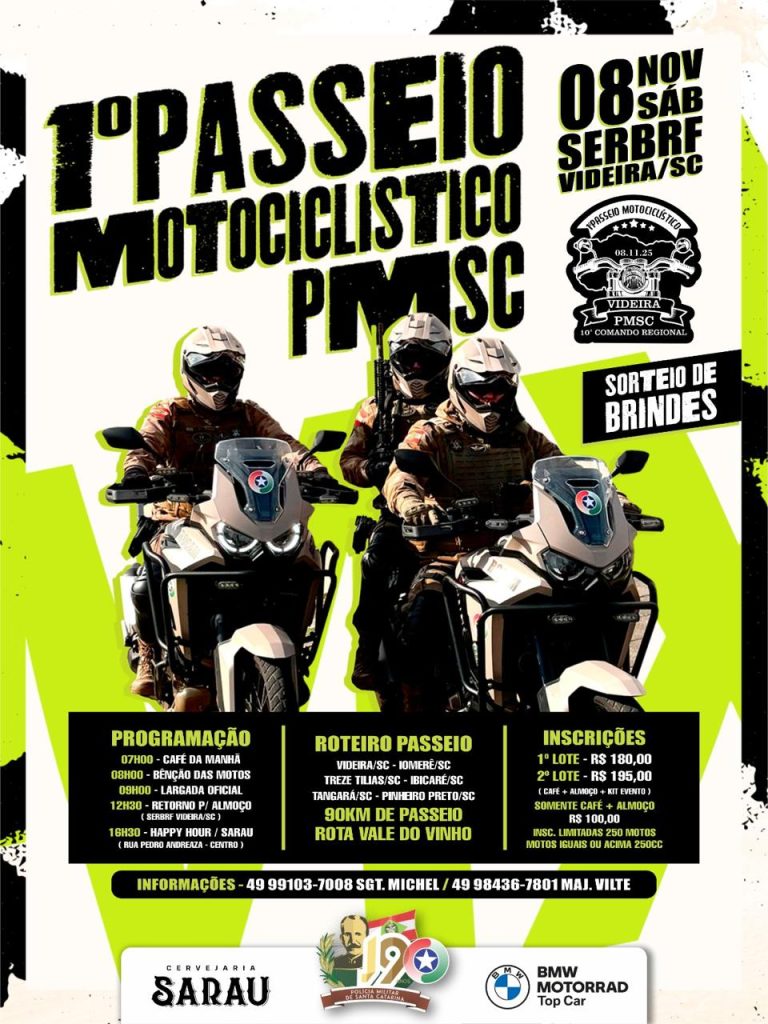 A Polícia Militar de Videira, por meio da 1ª Companhia do 15º Batalhão de Polícia Militar, está promovendo um passeio motociclístico com o objetivo de fortalecer a integração entre os motociclistas da região e aproximar ainda mais a corporação da comunidade. O evento, que contará com a presença de policiais e entusiastas das duas rodas, […]