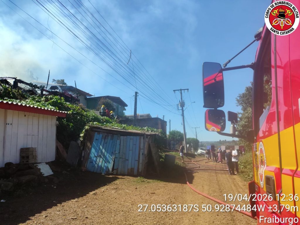 Um incêndio em residência mobilizou equipes do Corpo de Bombeiros Militar no início da tarde deste domingo, 19 de abril de 2026, por volta das 12h01min, no município de Fraiburgo, no Meio-Oeste catarinense. De acordo com as informações repassadas pela corporação, a ocorrência foi registrada no bairro Nossa Senhora Aparecida, na Quadra 593, após acionamento […]
