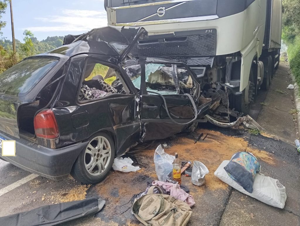 Videira a Fraiburgo – Homem morre em grave colisão entre carro e carreta