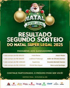 A CDL Fraiburgo realizou ontem, quinta-feira (27), o 2º sorteio da campanha Natal Super Legal 2025, que tem movimentado o comércio local e incentivado a população a prestigiar as lojas participantes. Consumidores que depositaram seus cupons concorreram a diversos prêmios, incluindo vales-compras e um carro 0km.