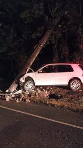 Ao chegar ao local, a guarnição confirmou que se tratava de uma saída de pista seguida de colisão frontal contra um poste da rede de energia elétrica, envolvendo um veículo de passeio Volkswagen Golf, de cor branca.