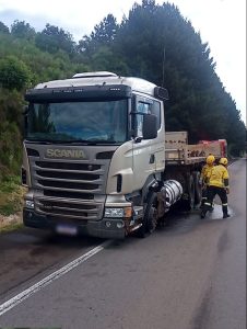 Além do atendimento às vítimas, a guarnição de socorro realizou a contenção de um vazamento de combustível no tanque do caminhão, provocado pela colisão. A Polícia Rodoviária Federal foi acionada e assumiu a segurança do local, enquanto providenciava as medidas cabíveis para o manejo dos veículos envolvidos.