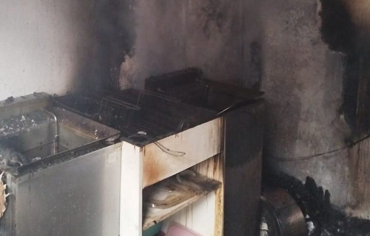 As chamas atingiram a fritadeira, o fogão, o exaustor, o teto de PVC e deixaram o ambiente coberto por fuligem. A área diretamente afetada pelo fogo foi de aproximadamente 25 m². Para conter o incêndio, foram utilizados cerca de 600 litros de água.