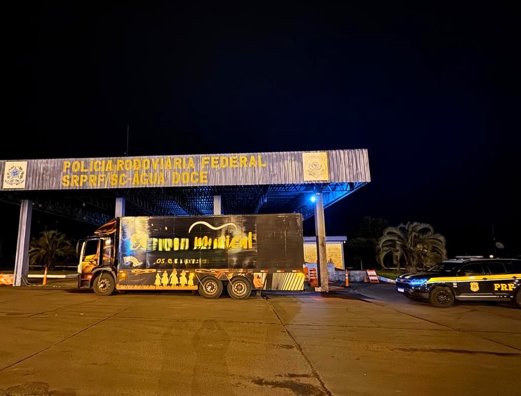 Policiais rodoviários federais apreenderam cerca de oito toneladas de camarão contrabandeado da Argentina na madrugada desta quinta-feira (9), durante uma fiscalização na BR-153, em Água Doce.