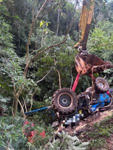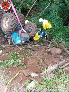 No local, as guarnições confirmaram que se tratava de um capotamento para fora da via, em um barranco, envolvendo um trator Landini, série 2-060. A vítima, que conduzia o veículo, ficou presa sob o trator e morreu ainda no local.