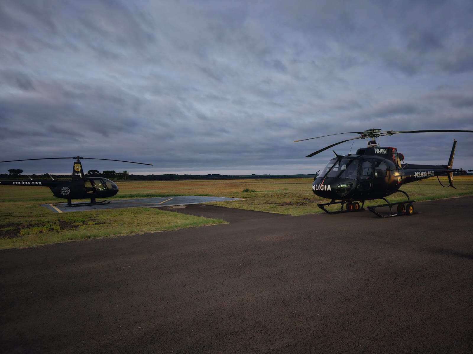 Para auxiliar no cumprimento das diligências, estão sendo utilizados 11 cães farejadores das polícias civis de Santa Catarina, Paraná e Rio Grande do Sul, além de uma aeronave do Serviço Aeropolicial de Fronteira (SAERFRON) e 146 viaturas.